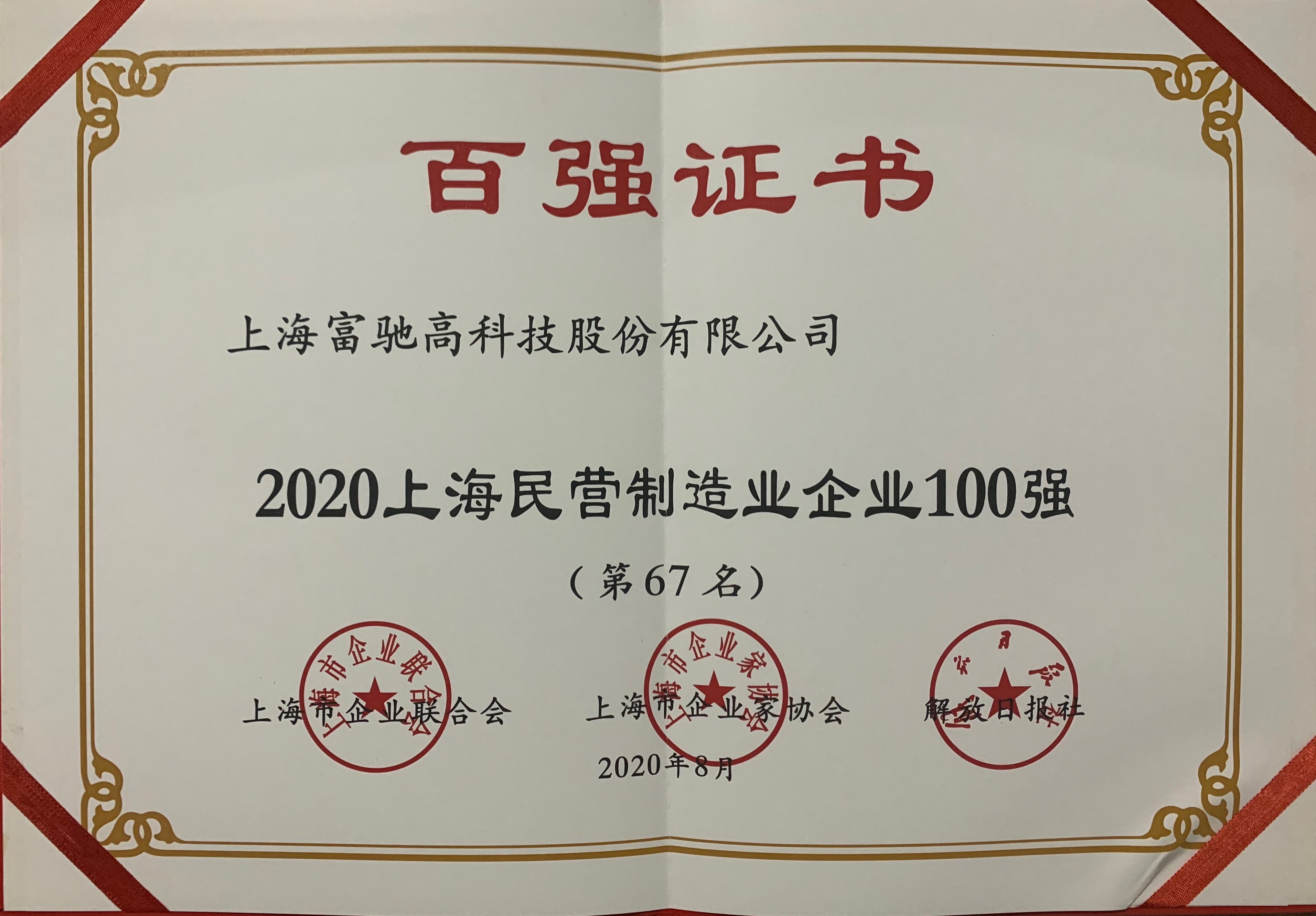 2020上海民營制造業(yè)企業(yè)100強(qiáng)